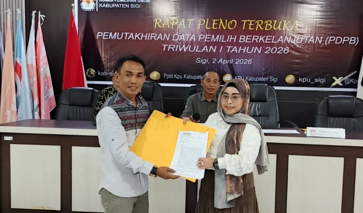 JOURNALRAKYAT.COM, SIGI – Badan Pengawas Pemilihan Umum (Bawaslu) Kabupaten Sigi terus memperkuat pengawasan terhadap proses pemutakhiran data pemilih sebagai fondasi utama demokrasi. Hal ini terlihat dalam pengawasan langsung pada Rapat Pleno Terbuka Pemutakhiran Data Pemilih Berkelanjutan (PDPB) Triwulan I Tahun 2026 yang digelar oleh Komisi Pemilihan Umum (KPU) Kabupaten Sigi,Kamis (2/4/2026), di Aula Kantor KPU Sigi.