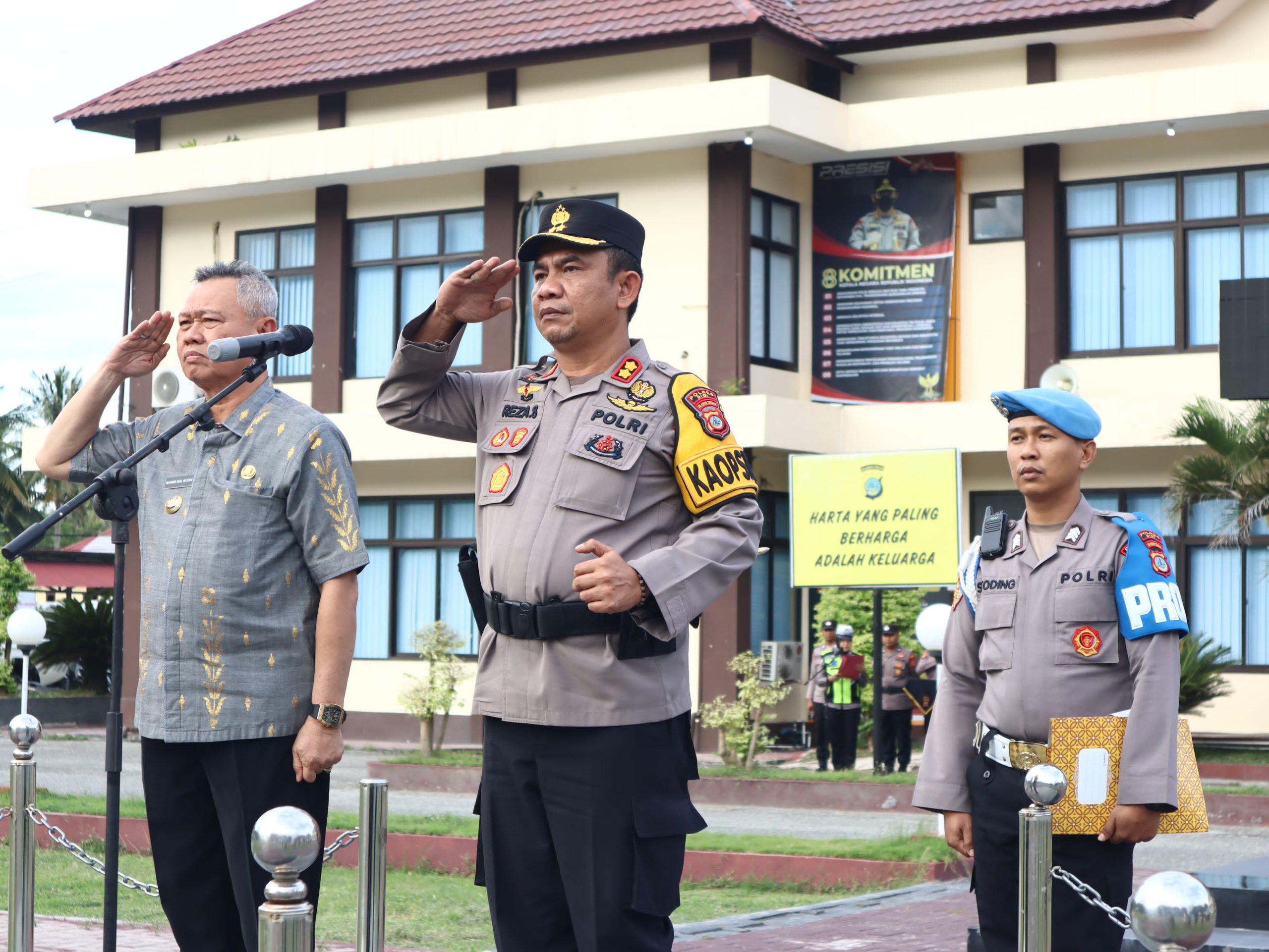 Dalam amanatnya, Kapolres membacakan pesan Kapolri yang menekankan pentingnya pengamanan perayaan Idulfitri 1446 Hijriah agar berjalan aman, tertib, dan lancar.