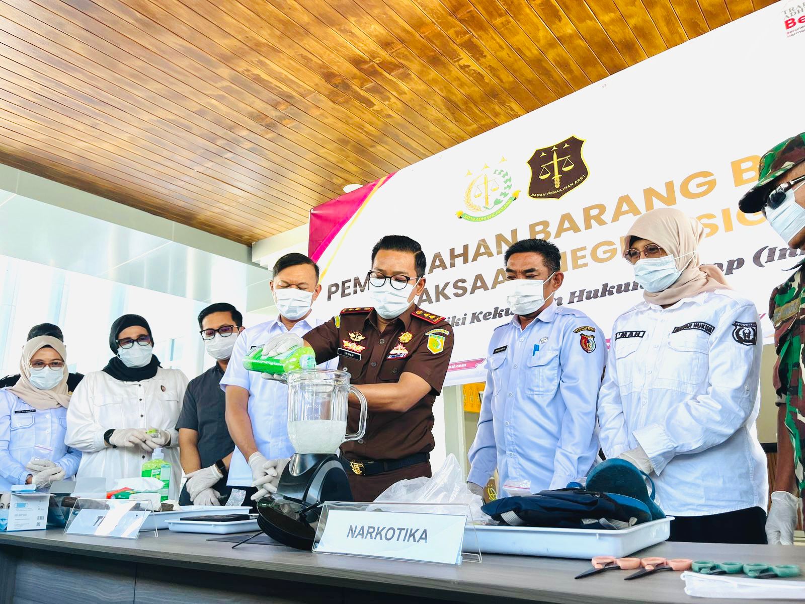 Proses pemusnahan dilakukan dengan metode yang disesuaikan dengan jenis barang bukti. Untuk narkotika jenis sabu, dilakukan penghancuran menggunakan mesin pelumat, kemudian dicampur dengan bahan kimia seperti natrium hipoklorit dan fenol untuk merusak struktur zat sebelum dibuang.