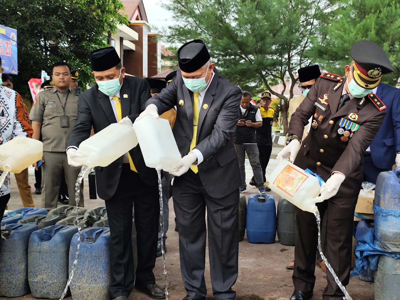 JOURNALRAKYAT.COM, SIGI – Ketua DPRD Kabupaten Sigi, Minhar Tjeho, bersama anggota DPRD Ardiyansyah, turut hadir dalam kegiatan pemusnahan dua ton minuman keras (Miras) ilegal di halaman Polres Sigi, Selasa (1/7/2025).