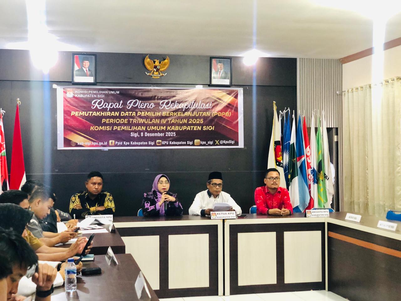JOURNALRAKYAT.COM, SIGI – Komisi Pemilihan Umum (KPU) Kabupaten Sigi, Sulawesi Tengah, menggelar Rapat Pleno Terbuka Rekapitulasi Pemutakhiran Data Pemilih Berkelanjutan (PDPB) Triwulan IV Tahun 2025.