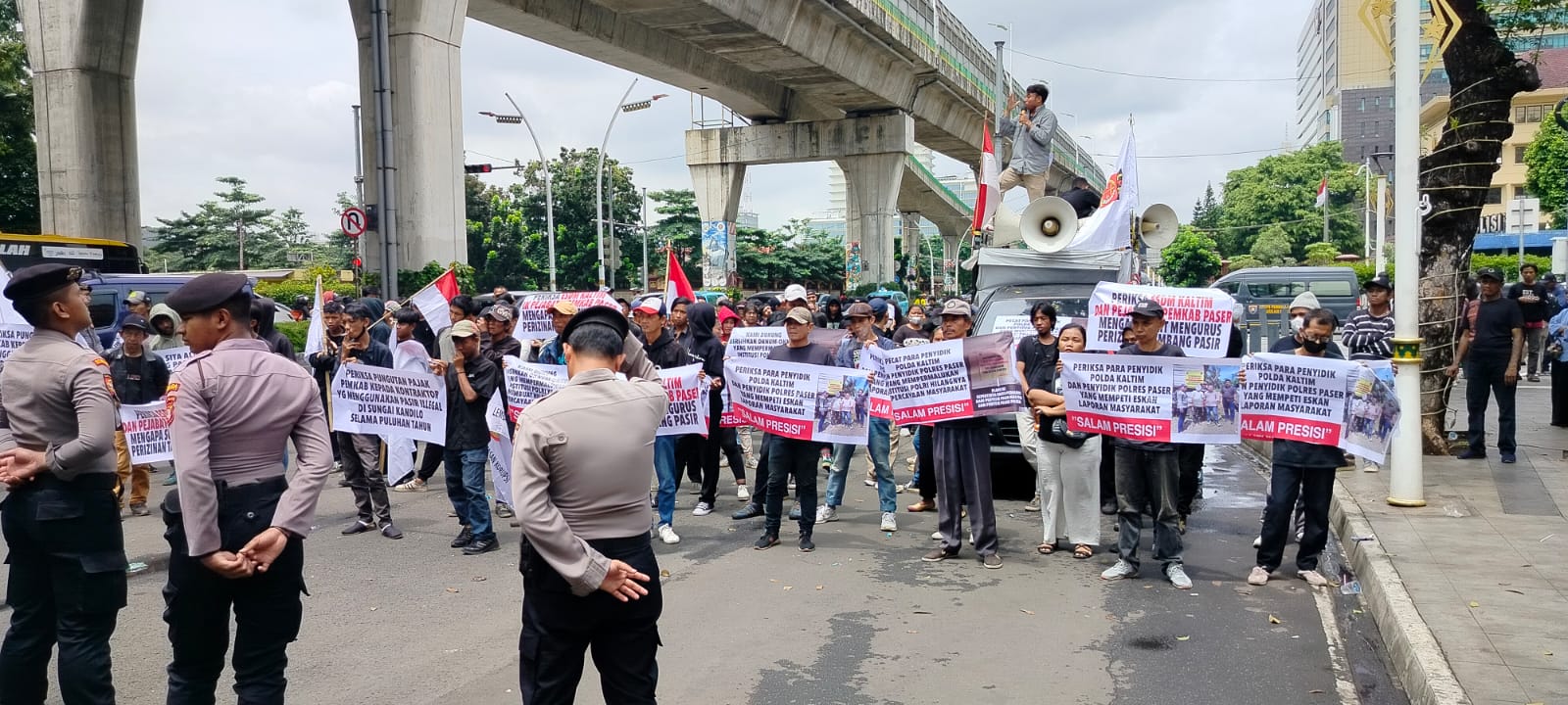 Desakan ini disampaikan dalam aksi demonstrasi di Mabes Polri, Jalan Trunojoyo, Jakarta Selatan, Rabu (19/2/2025).