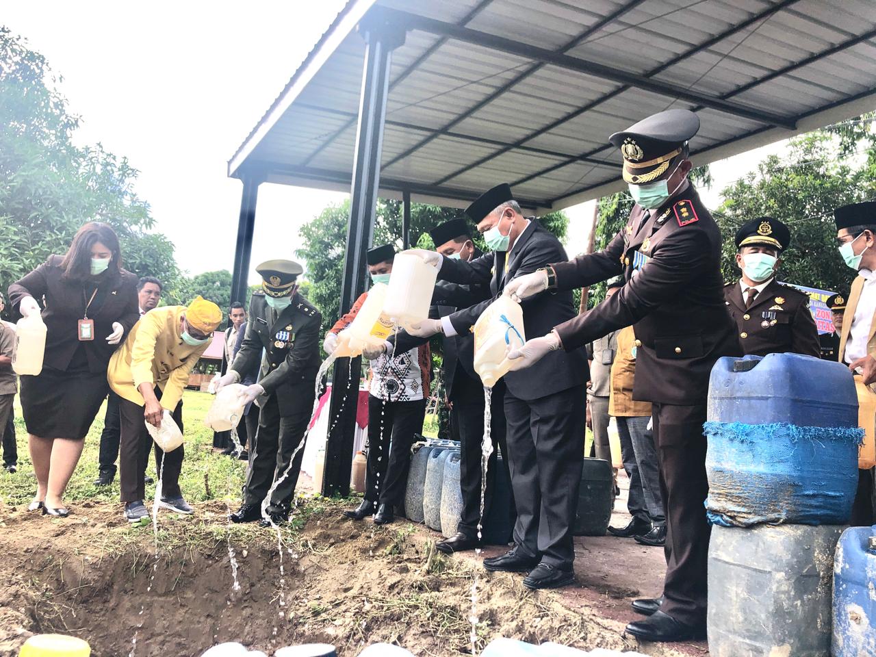 Pemusnahan dilakukan secara simbolis dengan menuangkan ratusan liter cap tikus dan saguer ke dalam lubang besar, disaksikan para tamu undangan dan masyarakat.