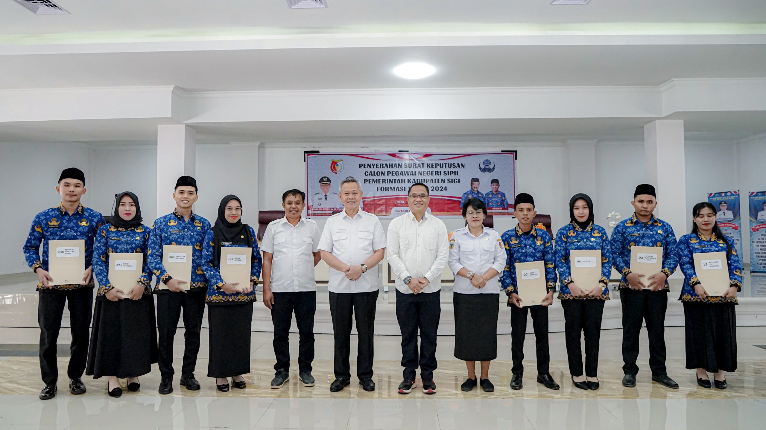 JOURNALRAKYAT.COM, SIGI – Sebanyak 317 Calon Pegawai Negeri Sipil (CPNS) formasi tahun 2024 resmi menerima Surat Keputusan (SK) pengangkatan dari Pemerintah Kabupaten Sigi.