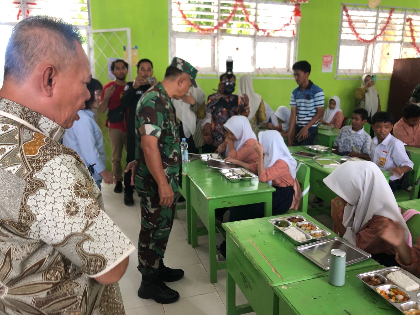 Dalam kesempatan itu, Rizal memastikan kesiapan pelaksanaan program dan menyapa para siswa yang telah menerima makanan bergizi secara gratis.